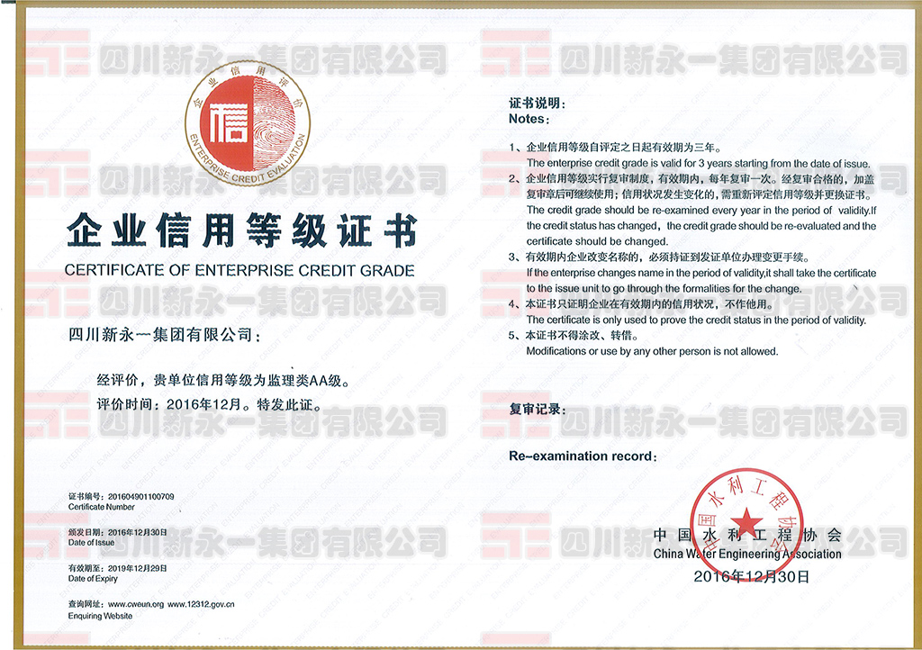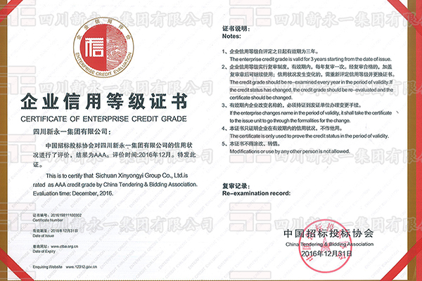 招投标AAA企业信用等级证书