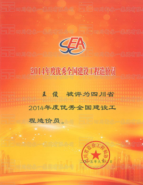 2014年度优秀全国建设工程造价员