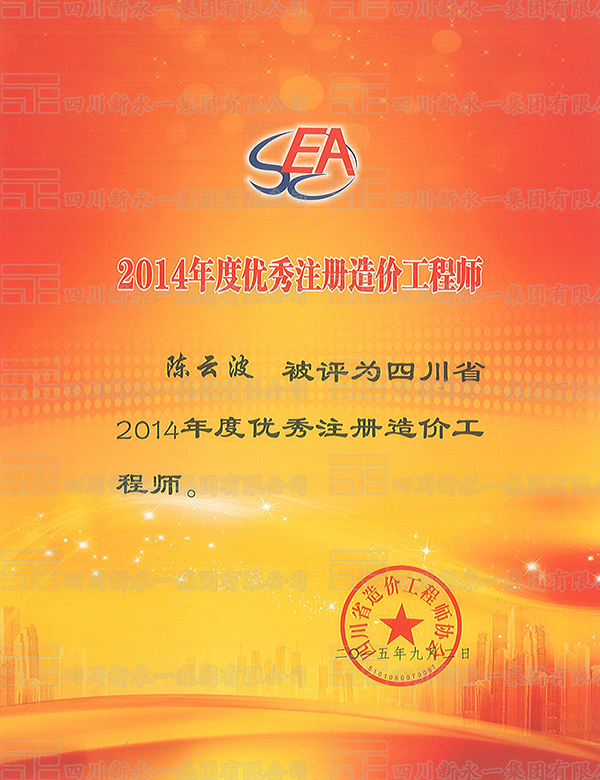 2014年度优秀注册造价工程师