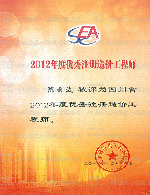 2012年度优秀造价工程师