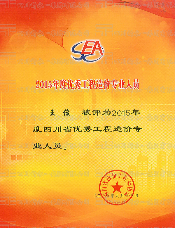 2015年度优秀工程造价专业人员