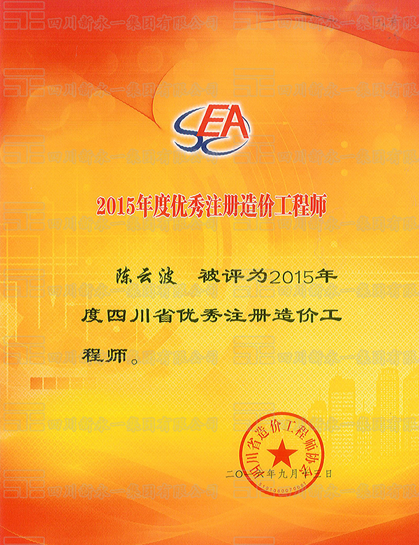 2015年度优秀注册造价工程师