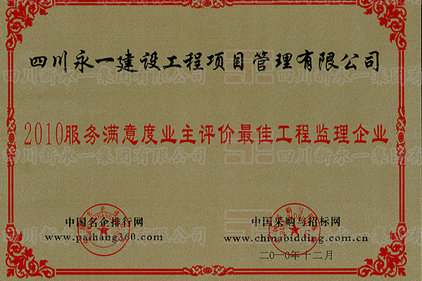 • 2010服务满意度业主评价最佳工程监理企业