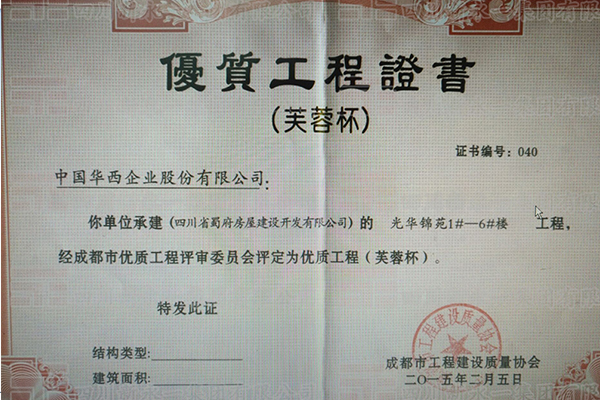 • 芙蓉杯优质工程证书