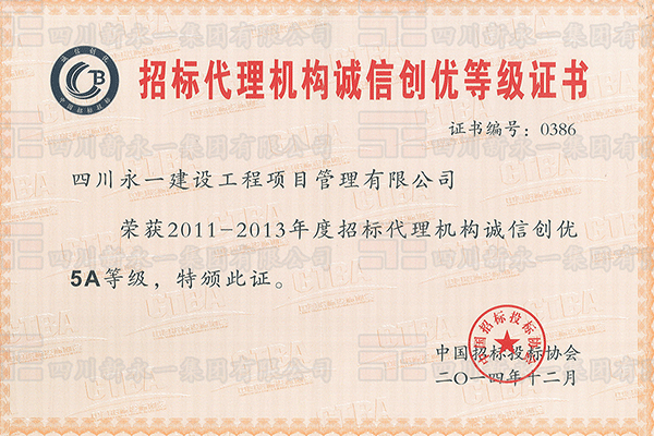 • 招标代理机构诚信创优等级证书