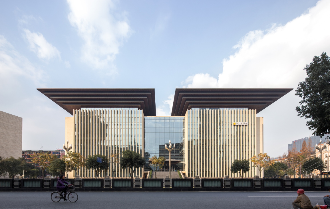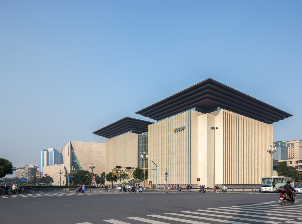 四川省图书馆(新馆)位于成都市青羊区人民西路与西华门街东北夹角,2009年正式开建。新馆占地17亩,建筑面积约5.2万平方米,是现在旧馆的3倍多,建成开放后将成为西南地区最大的图书馆。新馆建筑风格为新古典主义,外形酷似汉代宫殿门阙,象征着四川的悠久历史,这也源于新馆选址紧邻原成都皇城所在。新馆高38米,外观呈暖灰色,增加了历史厚重感。